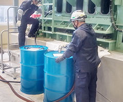 【櫻井】普段は、千葉県内を中心に活動しており、その半数がモノづくりの現場そのものである金属加工業の取引先様です。潤滑油の使用を通してお客様からは良い製品を作るためのトラブル改善や性能向上を期待されています。私個人としては、過去に金属材料商社で営業をしていた経験と石油業界に入ってから得た潤滑油や金属加工油の知識、当社の強みであるオイル交換作業、廃油回収までのスキーム提案でそのようなお客様の信頼を得られるよう、日々活動を行っています。