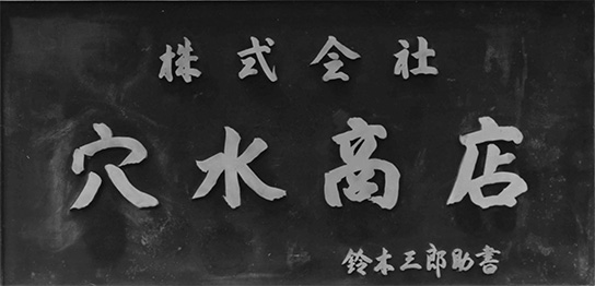 | 1933年(昭和8年) | 12月5日 | 法人組織での「株式会社穴水商店」を設立して、同時に社長に就任した。 本社を品川区南品川に置き、甲府の穴水商店を支店として、組織の基礎を整える。 |